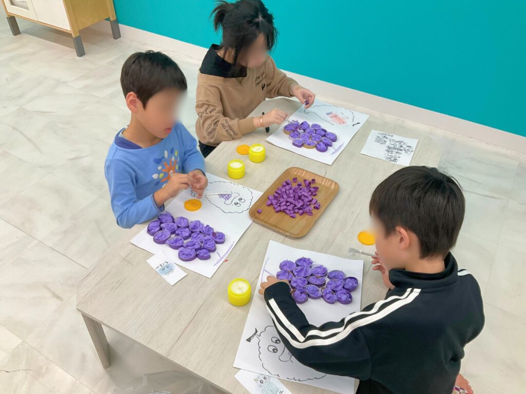 「まるくできた!」「大きいぶどうもいいね!」と、