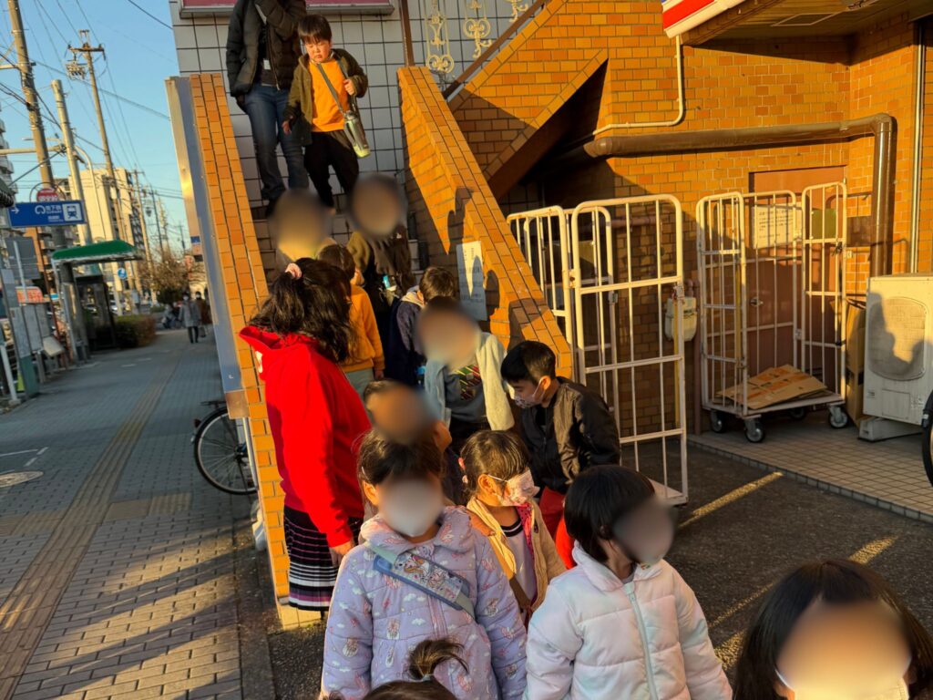 移動の際は、児発のお子さまは職員と手をつないで歩き、周囲の安全を確認しながら進みました。