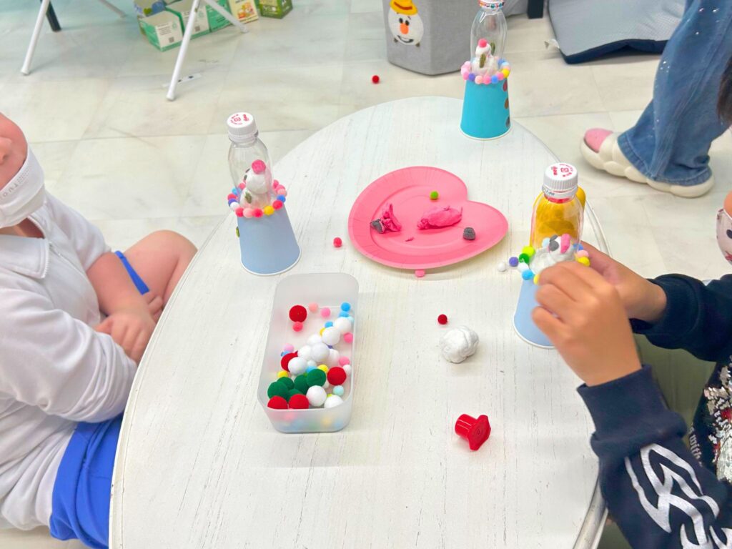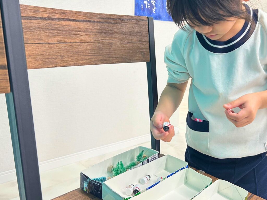 まずは、スノードームの仕組みを簡単に紹介しながら、「振ると雪が降るよ」「どんな世界を作ってみたい?」と子どもたちのイメージをふくらませる導入からスタート⛄️