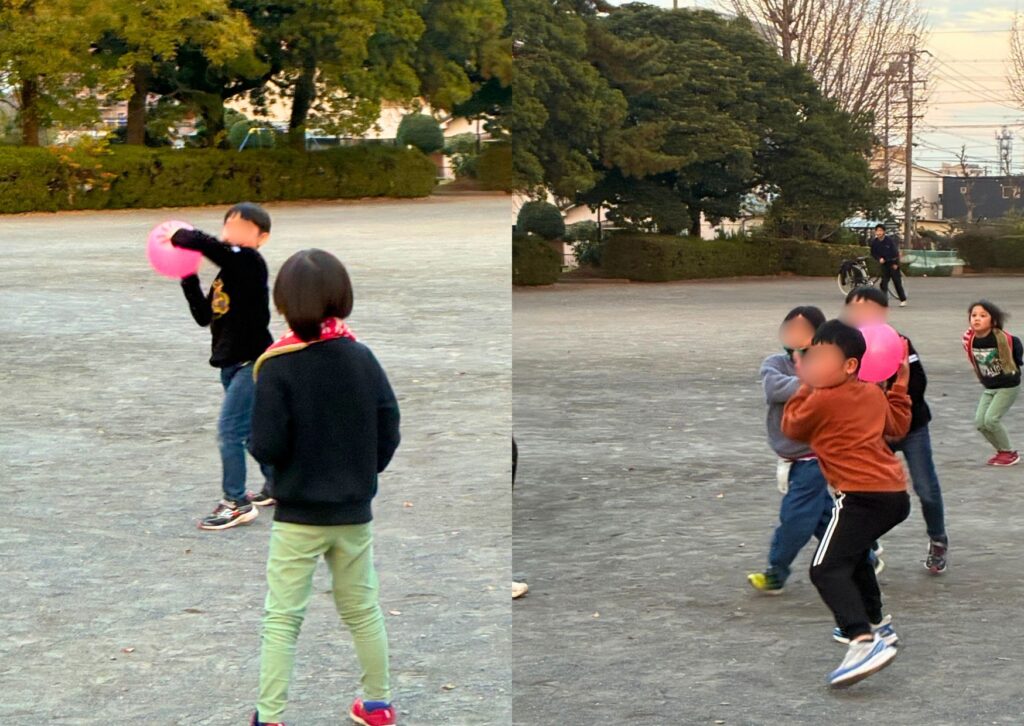 公園に到着すると、体を思いきり動かして ドッジボール に挑戦!