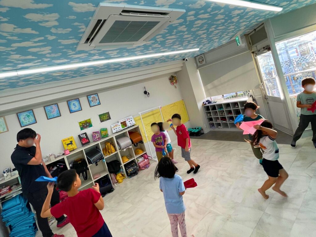 体をたくさん動かしながら、自分で工夫した紙飛行機を飛ばす達成感を味わうことができ、心も体もリフレッシュできた一日となりました🌈