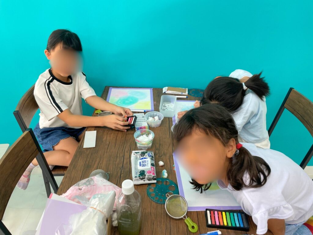 色の中から浮かび上がる模様ができて、子どもたちから「わあ!きれい!」と歓声があがっていました。