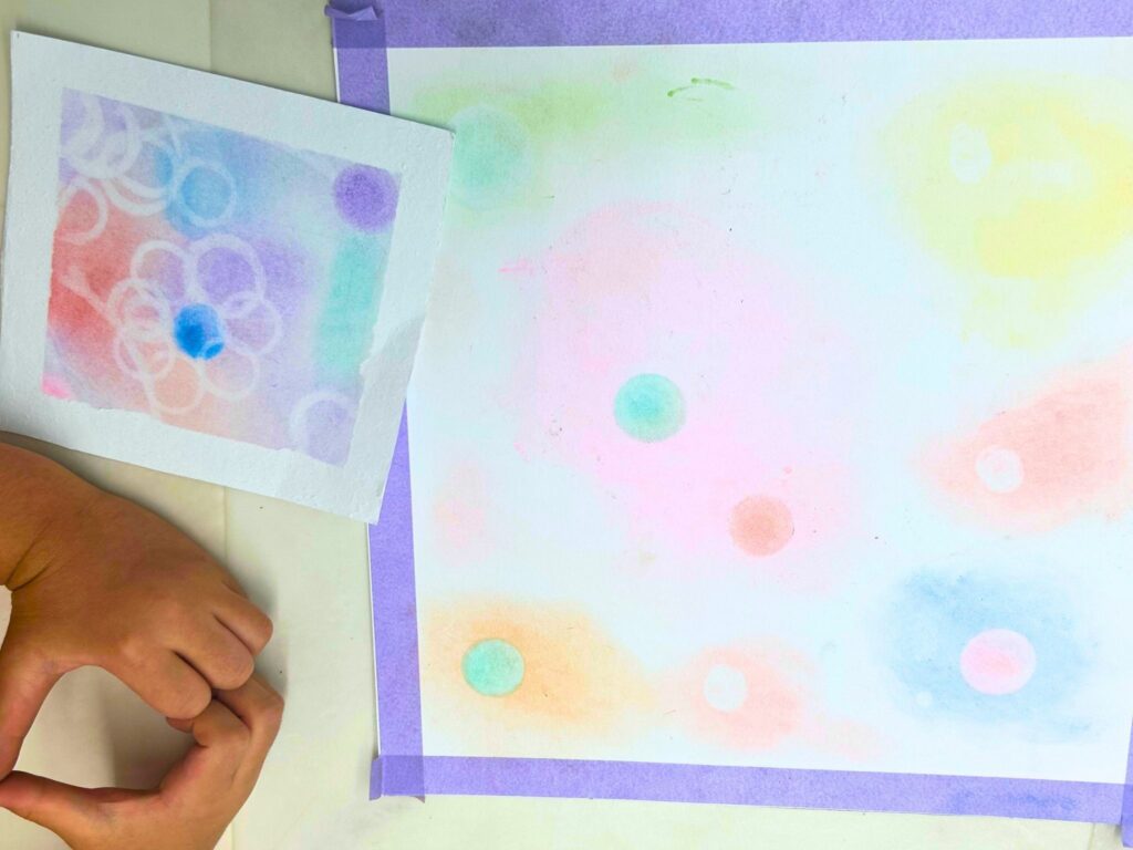 さらに、丸い型を使って型の中をスティック状の消しゴムで消していくと…不思議!✨