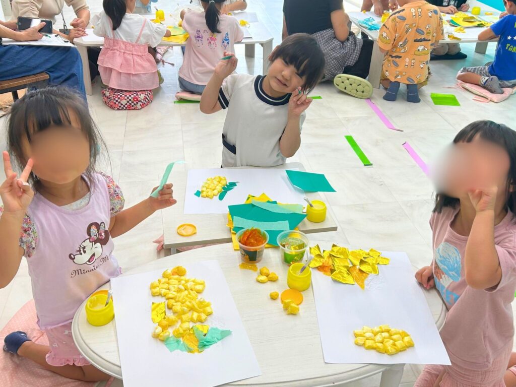 「できた!」「おいしそう!」と笑顔いっぱいで、楽しみながら手先の巧緻性や発想力を育むことができました。
