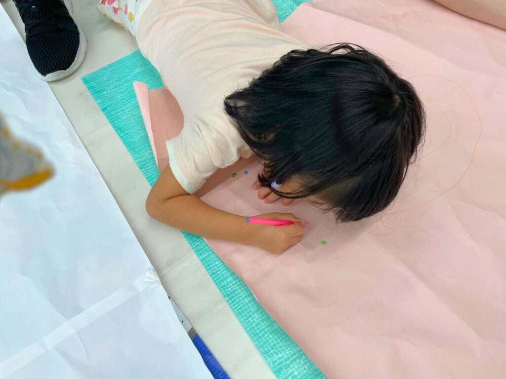 今日はアートアカデミーで、みんなで協力しておおきな紙に自由に絵を描くことに挑戦しました✨