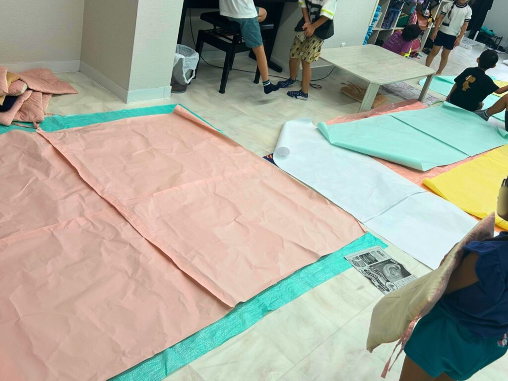絵が重なり合い、色が混ざり合い、みんなの想像力がひとつの紙の上でつながっていく姿はとても素敵でした。