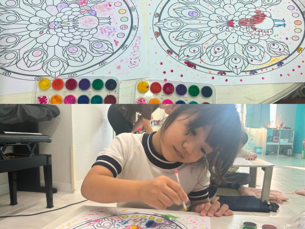 「ここに色を入れよう!」「もっとたくさん模様をつけたい!」と、思い思いに色を重ねていく姿が印象的でした🌈