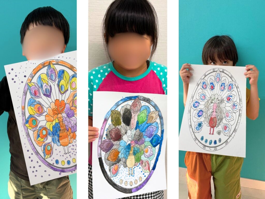 今日のアートアカデミーでは、「クジャクを描こう🦚」をテーマに活動しました🎨